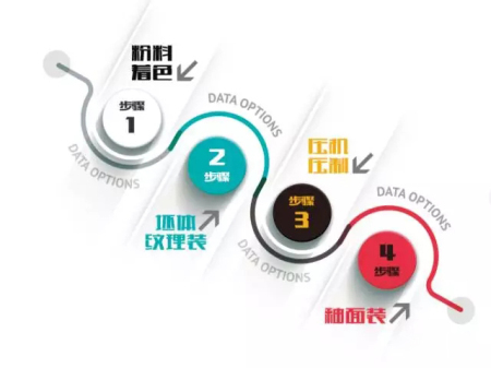 通過(guò)布料格柵將事先形成的紋理粉料,送入壓機(jī)模腔中壓制,壓出的磚坯就有了立體的紋理圖案。