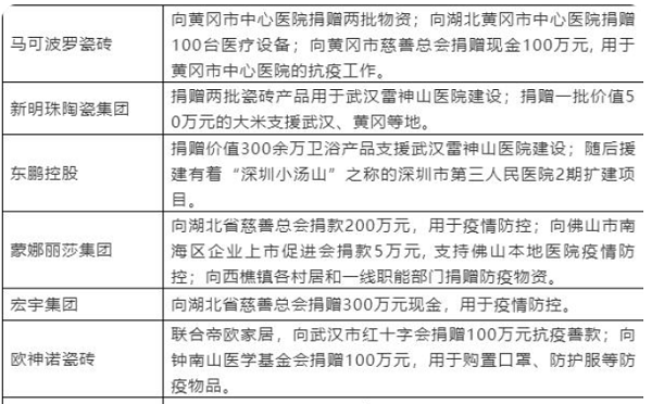 經(jīng)過實踐證明,一個企業(yè)如果以實際行動回報社會,在市場競爭中自覺承擔相應(yīng)的社會責任,會得到國家各級部門的支持,也會使企業(yè)非常容易在公眾中獲得高信任度和知名度。這對企業(yè)的品牌來講是一筆無形的巨額資產(chǎn),會讓品牌產(chǎn)生更大的魅力,對消費者具有更大的吸引力。2020年全國疫情爆發(fā),其中湖北是當時疫情最嚴重的地方,正所謂“一方有難,八方支援”,佛山陶瓷行業(yè)的眾多愛心企業(yè)也是第一時間火速支援抗疫前線。前線缺什么,他們便送什么,實實在在地反哺社會。