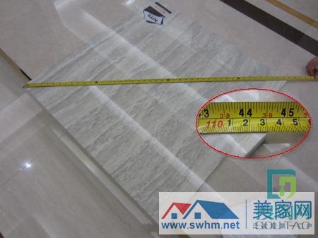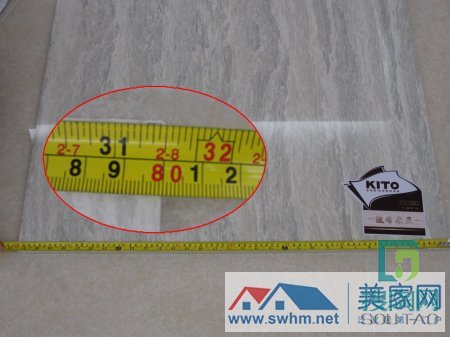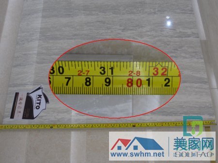 點評:測評員用普通的工地用尺細心測量著“波西米亞”的尺寸,符合800*800mm規格,鋪設起來也方便放心。